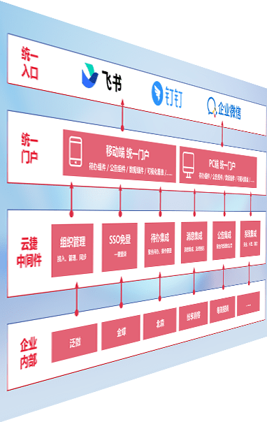 对协作平台提供支持服务,,,,支持企业应用与协作平台对接,,,包含组织同步、、、消息集成、、待办集成等。。。支持目前主流的协作平台:钉钉、、企微和飞书。。。